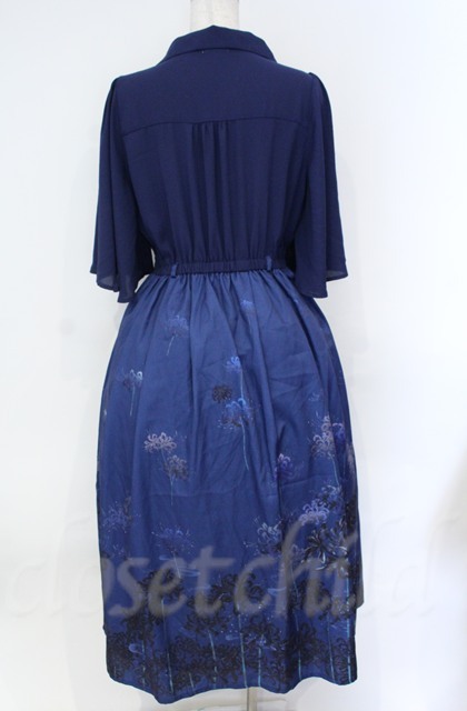 axes femme / 彼岸花柄ワンピース L ブルー O-25-10-31-3016-AX-OP-IG-OS [2100080000063304-O-25-10-31-3016-AX-OP-IG-OS]