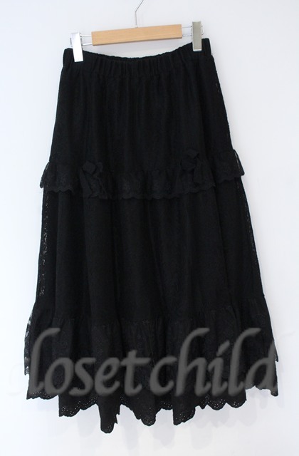 axes femme / ティアードコットンレーススカート  クロ O-25-10-31-3051-AX-CO-IG-OS