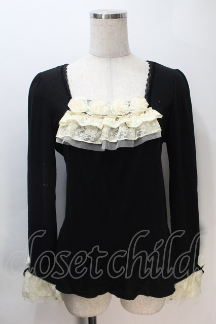 axes femme / シフォン巻きバラ付きプルオーバー 黒 S-25-11-02-047-AX-TO-HR-ZS [2100020000033065-S-25-11-02-047-AX-TO-HR-ZS]