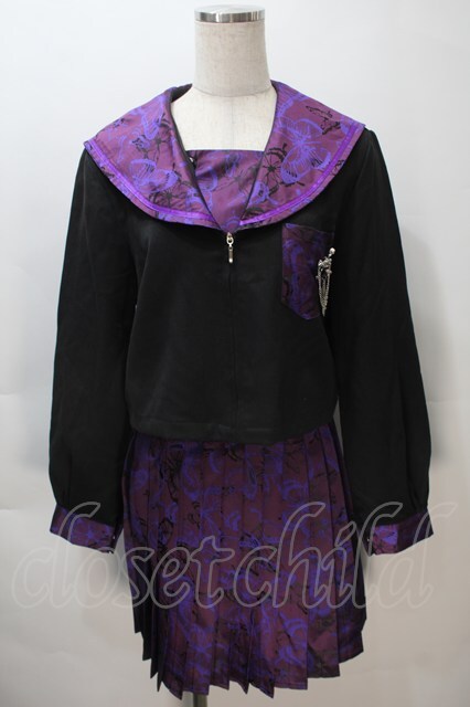 BLOOD SUPPLY(海外ブランド) / セーラージャケット+プリーツスカート 黒x紫 S-25-11-02-051-GO-TO-HR-ZS