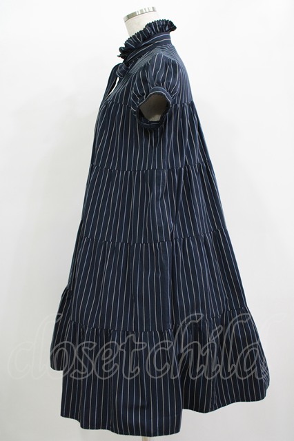 MILK / ストライプティアードワンピース ネイビー H-25-11-09-1006-ML-OP-KB-ZH