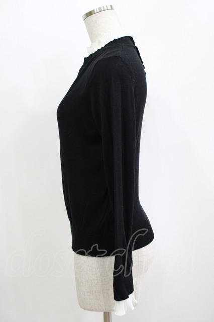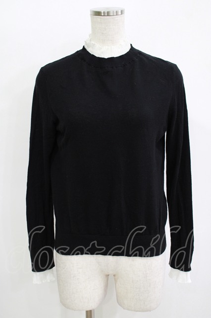 Jane Marple Dans Le Salon / Ripe cotton pleats frill sweater black × off white H-25-11-09-1051-JM-TO-KB-ZH [2100030000077056-H-25-11-09-1051-JM-TO-KB-ZH]