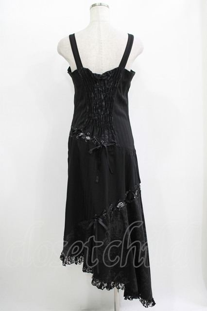 h.naoto Blood / プリント切替縫合ロングワンピース ブラック H-25-11-09-1017-HN-OP-KB-ZH [2100030000077081-H-25-11-09-1017-HN-OP-KB-ZH]