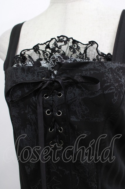 h.naoto Blood / プリント切替縫合ロングワンピース ブラック H-25-11-09-1017-HN-OP-KB-ZH