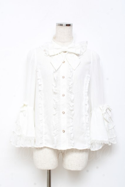 axes femme kawaii / 姫袖7分丈ブラウス M 白 Y-25-11-05-045-AX-BL-SZ-ZY