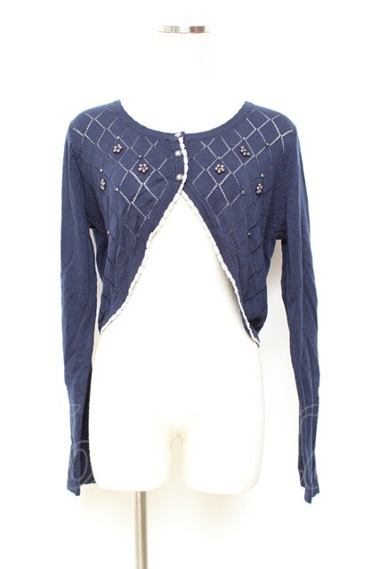 axes femme / ダイヤ柄ニットボレロ M 紺 Y-25-11-05-067-AX-TO-SZ-ZY