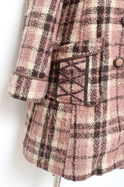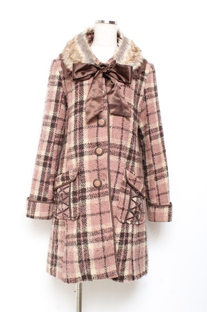 axes femme / ブロックチェックAラインコート M ピンク Y-25-11-05-106-AX-CO-SZ-ZY