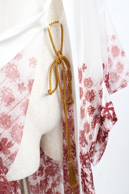 axes femme kawaii / 彼岸花柄シアー着物風羽織 M 白 Y-25-11-05-123-AX-TO-SZ-ZY