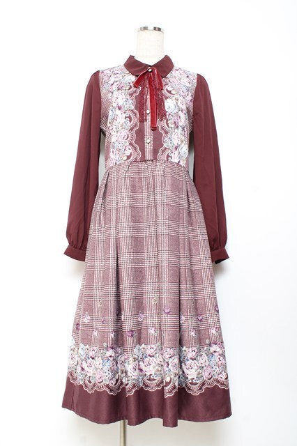 axes femme / グレンチェック花柄ワンピース M ワイン Y-25-11-05-127-AX-OP-SZ-ZY [2100070000052767-Y-25-11-05-127-AX-OP-SZ-ZY]