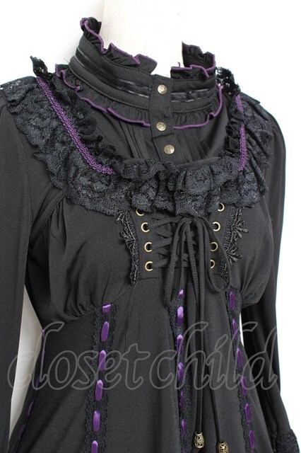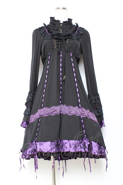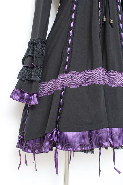 Ozz oneste / 姫袖裾プリーツサテンリボンワンピース 黒×紫 Y-25-11-05-133-OO-OP-SZ-ZY [2100070000052640-Y-25-11-05-133-OO-OP-SZ-ZY]