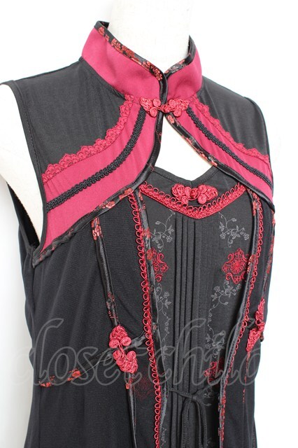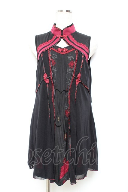 Ozz oneste / 羽衣天女チュニック 黒×赤 Y-25-11-05-138-OO-OP-SZ-ZY