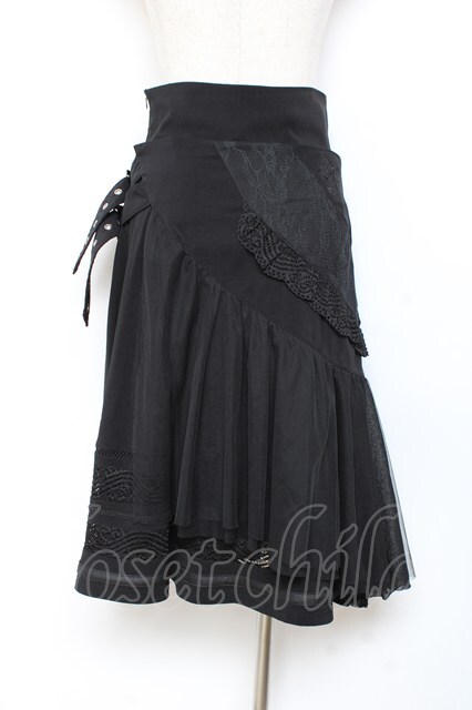 Ozz Croce / オーバースカート付きスカート 黒 Y-25-11-05-154-OO-SK-SZ-ZY