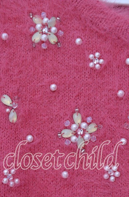 LODISPOTTO / ビジュー配色シャギーニット M ピンク O-25-11-03-084-LO-TO-OW-OS