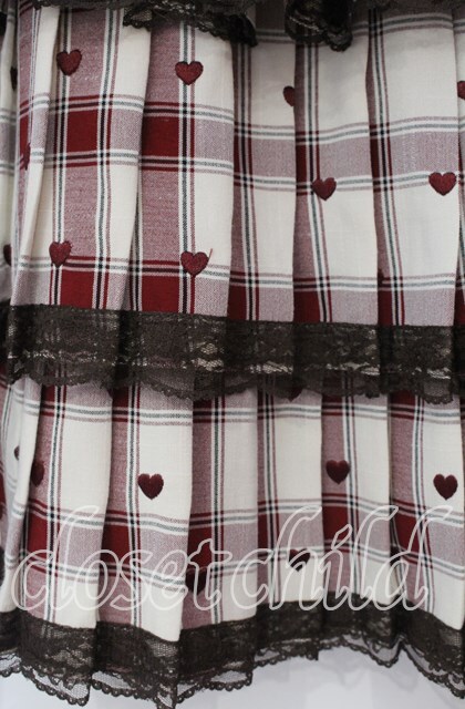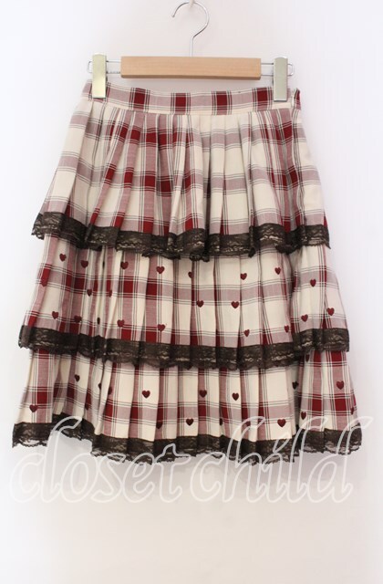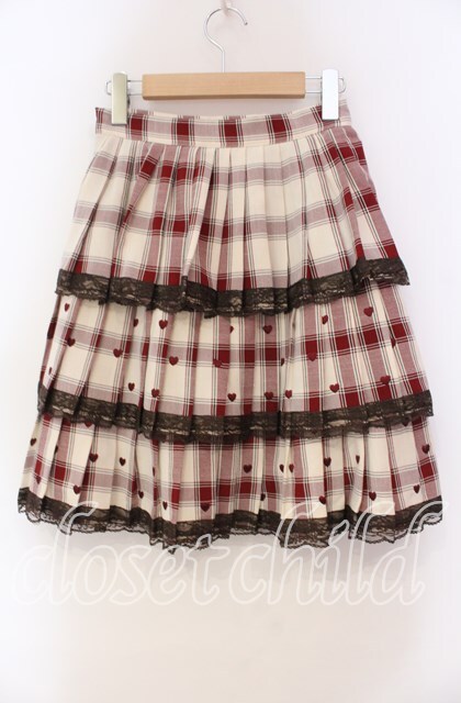 mille fille close by LODISPOTTO / ショコラハートチェックスカート S ベージュ×アカ O-25-11-03-080-LO-SK-OW-OS