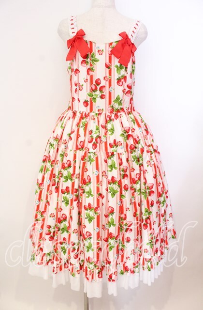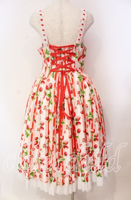 heavenlygarden / イチゴ編み上げジャンパースカート シロ×アカ O-25-11-03-009-LO-OP-IG-OS