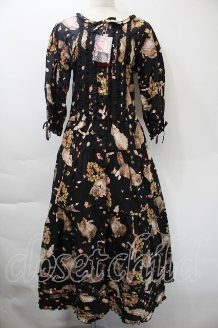 PINK HOUSE / フラッフィーキティーズプリントワンピース 黒 S-25-11-03-041-LO-OP-AS-ZS