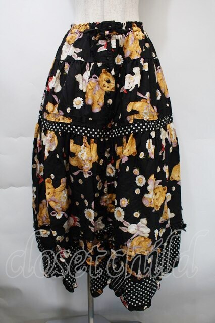 PINK HOUSE / ひな菊ロンドプリントスカート 黒 S-25-11-03-051-LO-SK-AS-ZS [2100070000053005-S-25-11-03-051-LO-SK-AS-ZS]
