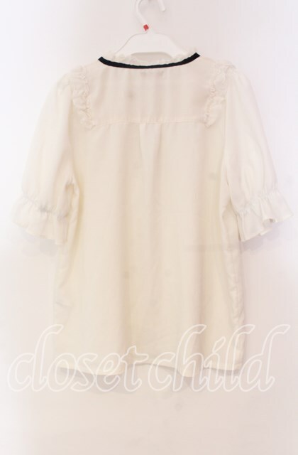 axes femme POETIQUE / 花ブローチ付プチスタンドブラウス M オフ O-25-11-04-086-AX-BL-IG-OS