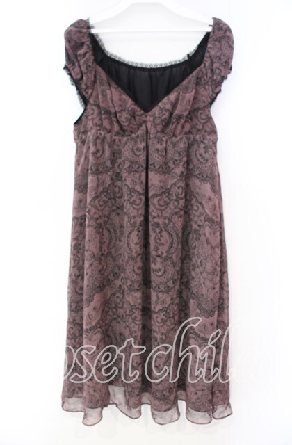 HYSTERIC GLAMOUR /ULLDANCINGLACE総柄ギャザーワンピース  ピンク×クロ O-25-11-04-073-PU-OP-IG-OS