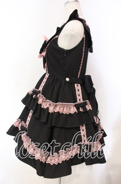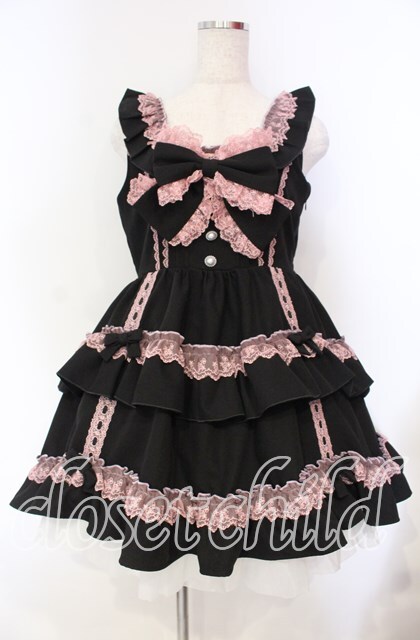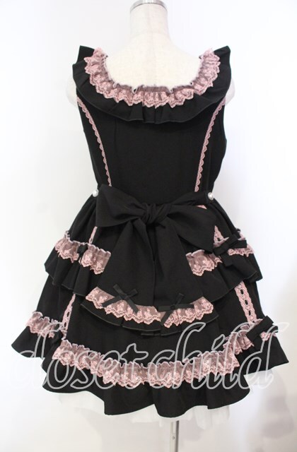 DearMyLoveEmily / フリルたっぷりはしごレースリボンジャンスカ M クロ×ピンク O-25-11-04-042-LO-OP-IG-OS