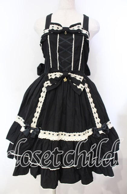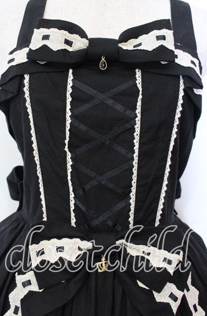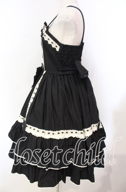 metamorphose / はしごレースジャンパースカート(無地)  クロ×オフ O-25-11-04-040-ME-OP-IG-OS
