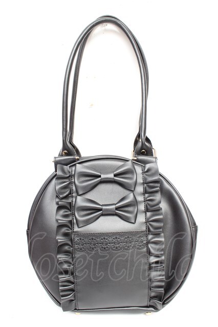 axes femme kawaii / ツインリボンラウンドハンドバッグ 黒 Y-25-11-06-007-AX-BG-SZ-ZY