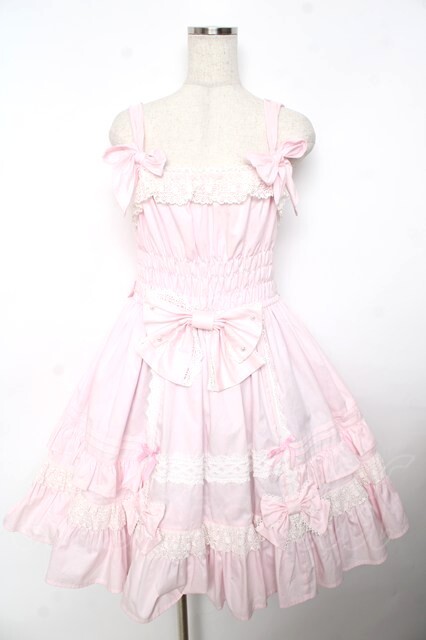 Angelic Pretty / リボンシャーリングジャンパースカート ピンク Y-25-11-06-127-AP-OP-AS-ZY