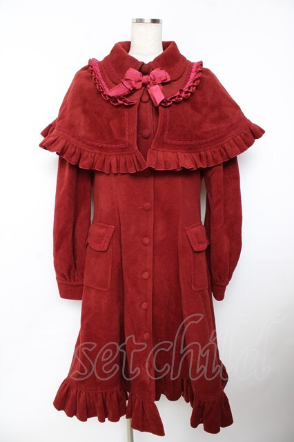 Hoshibako Works / アイシング・フリル ケープ付きプリンセスラインコート ワイン Y-25-11-06-071-LO-CO-SZ-ZY
