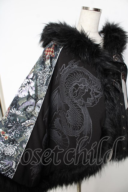 Qutie Frash / 和柄切り替えポンチョ 黒 Y-25-11-06-090-QU-CO-SZ-ZY [2100070000033660-Y-25-11-06-090-QU-CO-SZ-ZY]