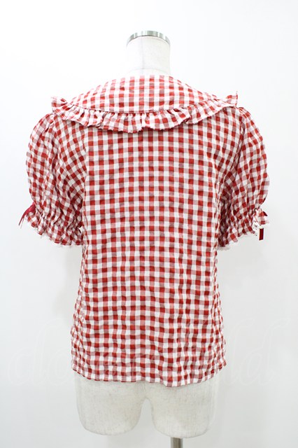 axes femme kawaii / ギンガムチェック半袖ブラウス M レッド H-25-11-12-1054-AX-BL-NS-ZH [2100030000077475-H-25-11-12-1054-AX-BL-NS-ZH]