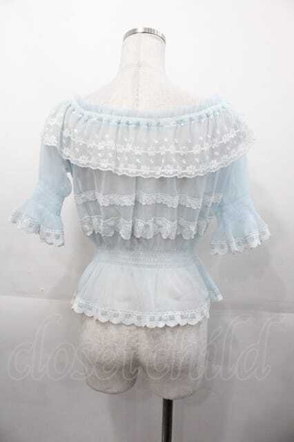 LIZ LISA / チュールレース半袖ブラウス サックスX白 I-25-11-04-006-LO-BL-SA-ZI [2100060000043892-I-25-11-04-006-LO-BL-SA-ZI]
