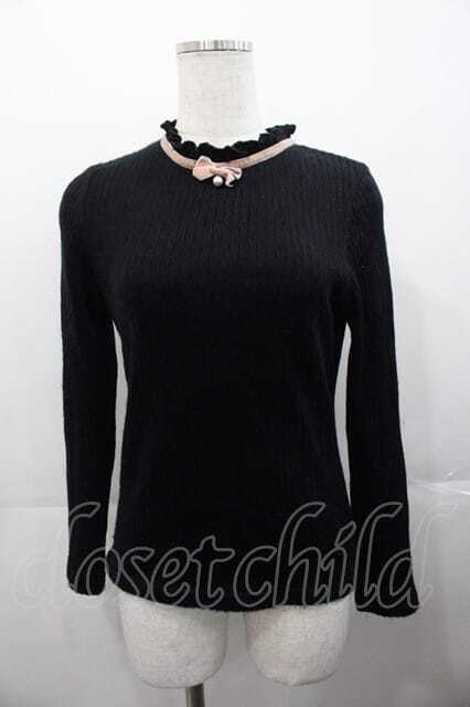 mon lily / リボンパールハイネックトップス 黒Xピンク I-25-11-04-010-LO-TO-SA-ZI [2100060000043887-I-25-11-04-010-LO-TO-SA-ZI]
