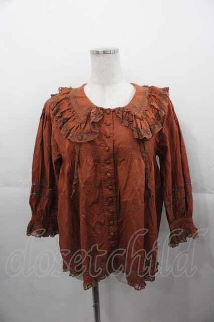 PINK HOUSE / フリルカラー胸元切替五分袖ブラウス  ブラウン I-25-11-04-021-LO-BL-SA-ZI