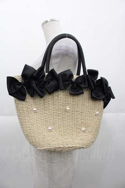 axes femme POETIQUE / リボン雑材風バッグ アイボリーX黒 I-25-11-04-093-AX-BG-SA-ZI [2100060000037536-I-25-11-04-093-AX-BG-SA-ZI]