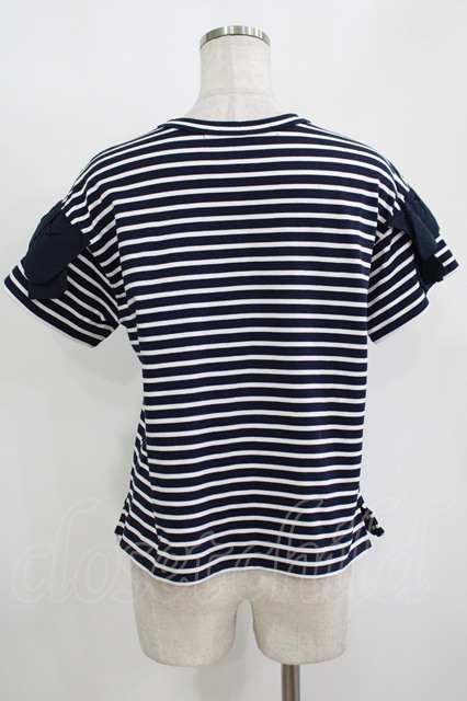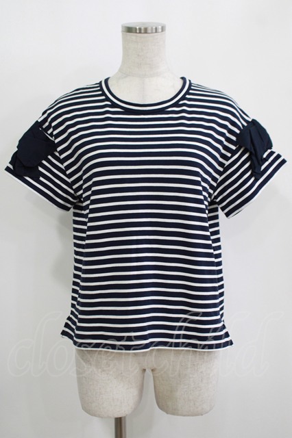 Jane Marple Dans Le Salon / マリンボーダーとリボンスリーブのプルオーバー ネイビー H-25-11-12-038-JM-TO-KB-ZH