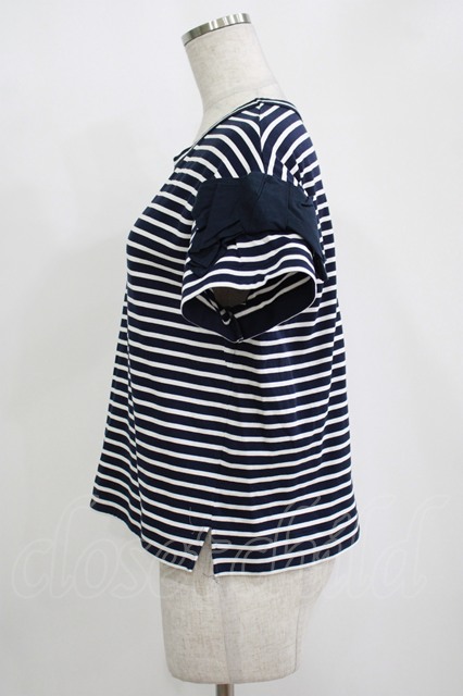 Jane Marple Dans Le Salon / マリンボーダーとリボンスリーブのプルオーバー ネイビー H-25-11-12-038-JM-TO-KB-ZH [2100030000077255-H-25-11-12-038-JM-TO-KB-ZH]