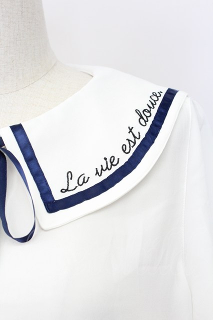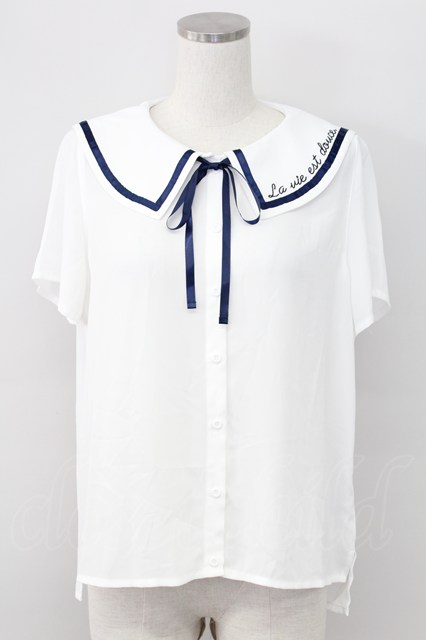 Rydia / 襟刺繍セーラー半袖ブラウス 白Xネイビー T-25-11-06-004-PU-BL-SA-ZT [2100060000038863-T-25-11-06-004-PU-BL-SA-ZT]