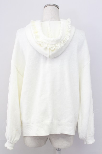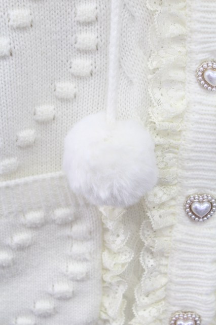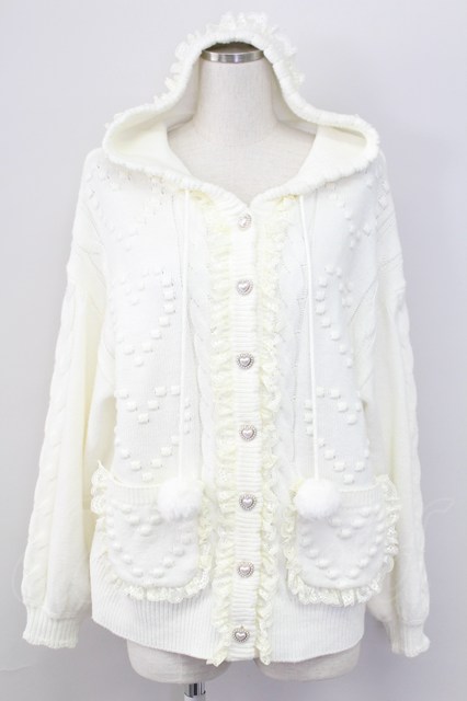 Secret Honey / ハートパールボタンフードニットカーディガン 白 T-25-11-06-022-CA-TO-SA-ZT