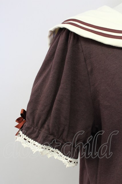 Lovely MAM MAXICIMAM / ブリーシュクレボンボンうさちゃんのセーラーカットソー ブラウン T-25-11-06-028-LO-TO-SA-ZT