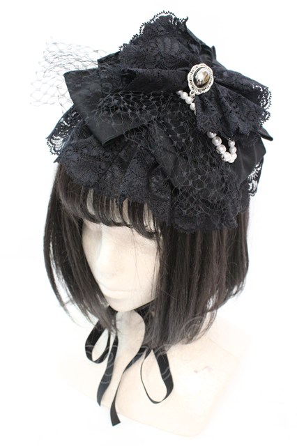 MARBLE / アンティークブローチ付きゴシック調ヘッドドレス ブラック O-25-11-06-012-GO-AC-IG-OS