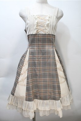 嬰梵塔.Infanta / チェック切替ジャンパースカート オフxベージュ S-25-11-05-018-LO-OP-HR-ZS