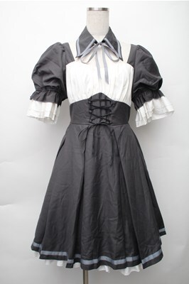 中国ロリータ / シャーリング切替ワンピース グレーx白 S-25-11-05-031-LO-OP-HR-ZS [2100020000033633-S-25-11-05-031-LO-OP-HR-ZS]