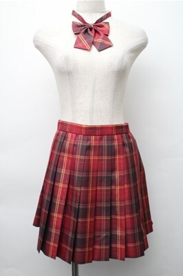 海月社 / リボン付きチェックスカート 赤 S-25-11-05-047-LO-SK-HR-ZS