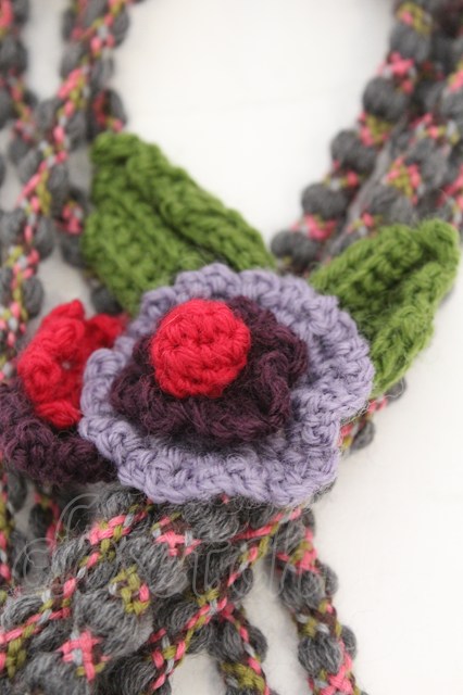 TOMATSU / ニットモチーフベルト グレー×パープルフラワー O-25-11-07-1054-LO-ZA-IG-OS