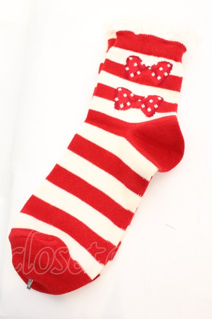 Angelic Pretty / ボーダーリボンクルー丈ソックス アカ O-25-11-07-1037-AP-ZA-IG-OS [2100080000063935-O-25-11-07-1037-AP-ZA-IG-OS]