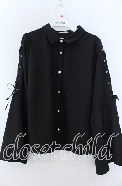 axes femme POETIQUE / ブローチ付フレアスリーブブラウス クロ O-25-11-07-038-AX-BL-IG-OS