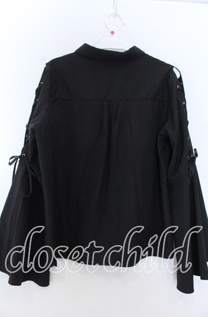 axes femme POETIQUE / ブローチ付フレアスリーブブラウス クロ O-25-11-07-038-AX-BL-IG-OS [2100080000063715-O-25-11-07-038-AX-BL-IG-OS]
