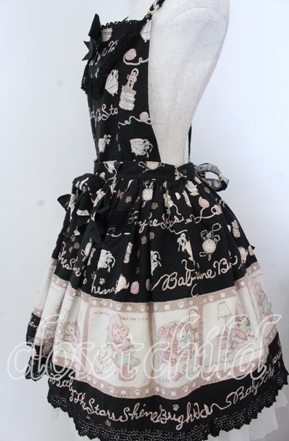 BABY,THE STARS SHINE BRIGHT / ねこ・NEKO・ラプソディー柄エプロンスカート クロ O-25-11-07-084-BA-SK-OW-OS