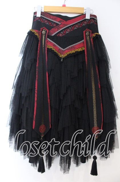 Ozz oneste / 流水羽衣天女スカート ブラック×レッド O-25-11-07-016-OO-SK-IG-OS