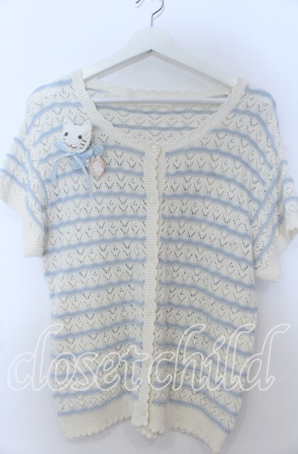 PINK HOUSE / さざ波とねこミニブローチ付きニットカーディガン サックス O-25-11-07-165-LO-TO-OW-OS [2100080000063890-O-25-11-07-165-LO-TO-OW-OS]